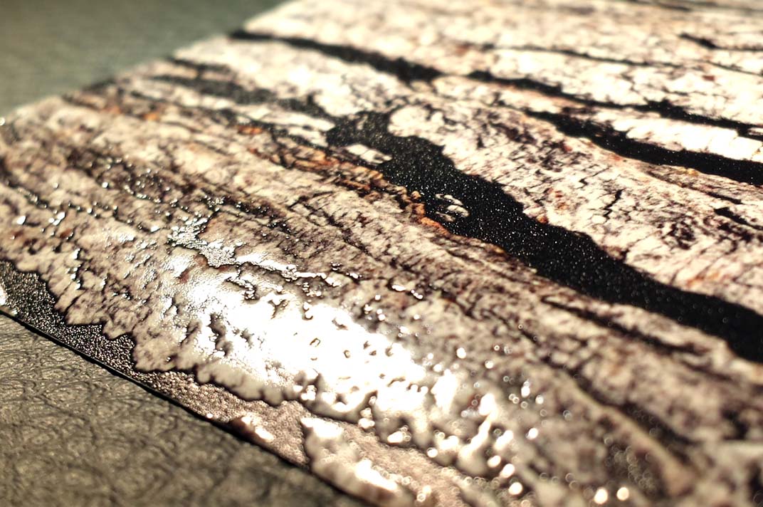 Haptischer UV-Druck einer Birkenrinde