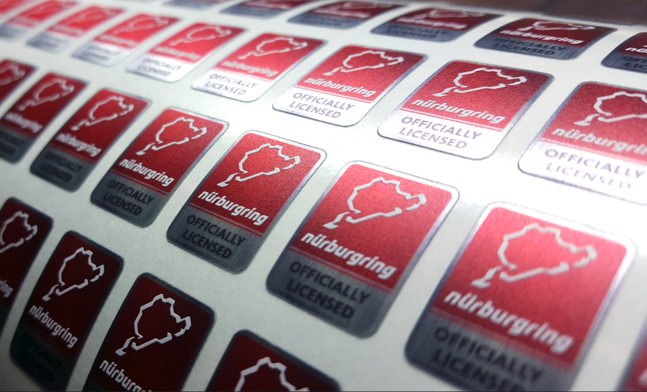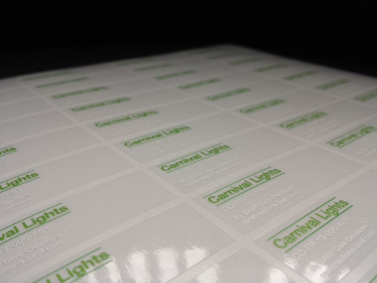 Aufkleber aus Metallfolie mit Sonderfarbe weiß