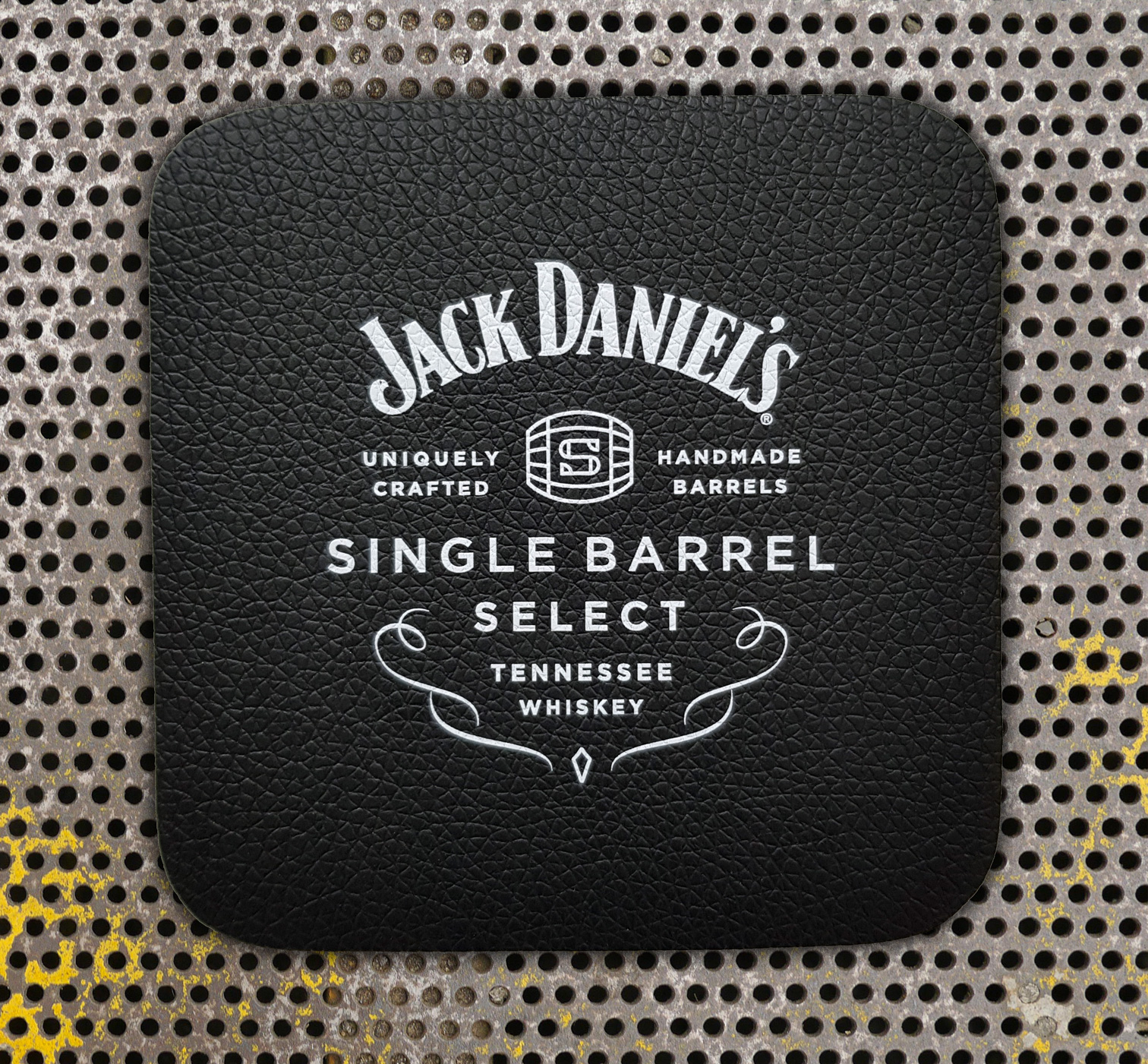 Schwarzer Ledercoaster mit weißem UV-Druck