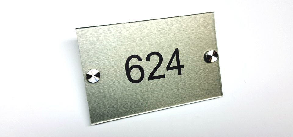 Sie können aus einer großen Vielzahl unterschiedlichsten Materialien wie etwa Acryl, Kunststoff, Edelstahl, Eloxiertes-Aluminium, Alu-Verbundplatte, Schiefer oder Holz wählen. Auf Wunsch können unsere Produkte auch selbstklebend ausgestattet werden, oder wir liefern das passende Befestigungsmaterial wie Abstandshalter gleich mit dazu.